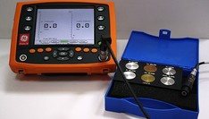 • The KARL DEUTSCH RMG 4015 crack depth meter measures the depth of cracks in iron, steel and austenitic steel components. It can also be used to measure cracks in copper, brass, aluminum and other non-magnetic metals. The principle of operation is based on a potential probe. A probe with four spring-loaded, gold-plated contact pins is placed across the crack in the material under test. Alternating current flows between the two pins through the element under test. The other two pins measure the voltage drop, on the basis of which the crack depth is estimated. The device uses an alternating voltage and a skin effect that forces the current to flow over the conductor surface and hence follow the fracture contour. The operation and the measured value are monitored by the microprocessor of the device. The measurement range is from 0 to 99.9 mm.