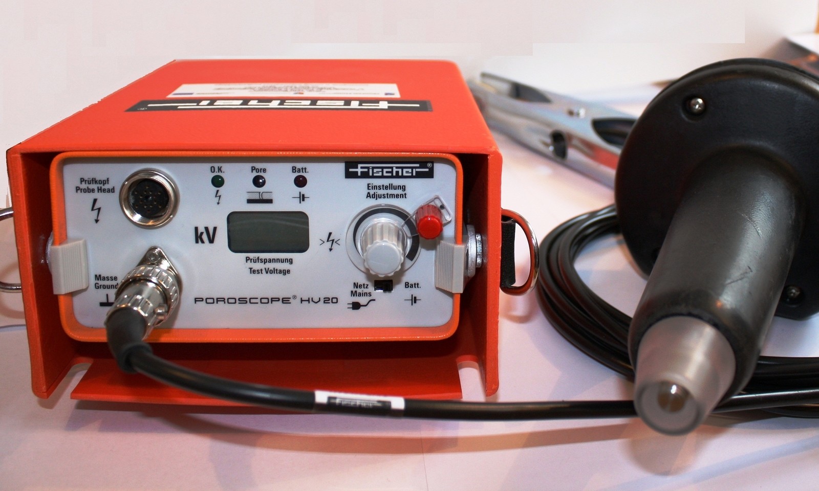 • POROSCOPE HV20 (D) is used to detect the presence of pores or punctures in a non-conductive protective coating applied to metal parts. The high voltage method was used in accordance with ISO 2746, ISO 8289 and DIN 28055.