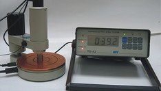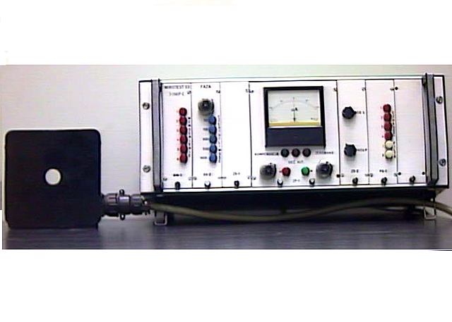 • Ultrasonic speedometer AMEX. The device enables measurements of the velocity of longitudinal ultrasonic waves in [m / s] or material thickness in [mm].
