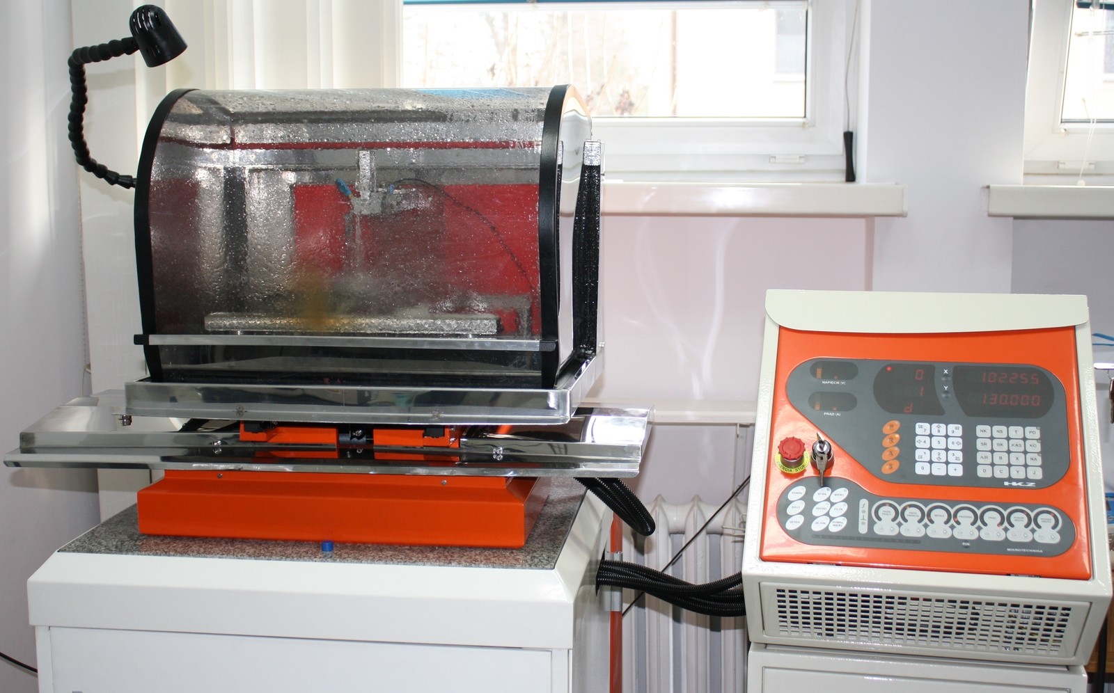 - Drążarka drutowa BP95d- (2-osiowa) służy do wycinania detali w materiałach przewodzących prąd elektryczny (miedź, aluminium, stal, spieki) metodą elektroiskrową przy pomocy drutu przesuwającego się w prowadnicach- pionowo do stołu. W Katedrze wykorzystywana jest do wycinania mniejszych próbek z dużych detali.