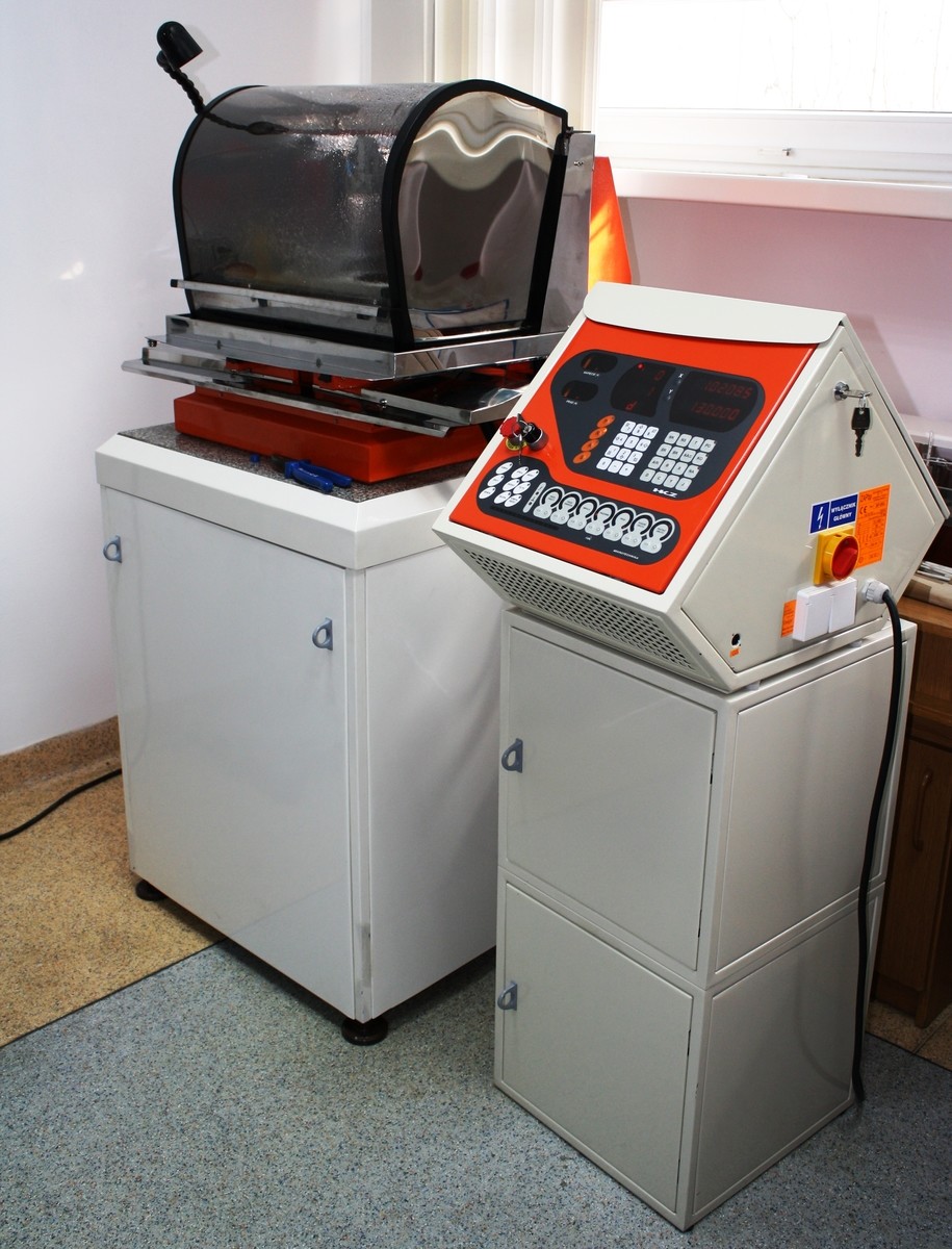 • Polerka z regulowaną prędkością obrotową, wymiennymi tarczami oraz zmiennym naciskiem próbki na tarczę polerską.