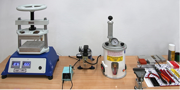 • Zestaw do odlewania precyzyjnego metodą wytapianych modeli firmy PAT. W procesie wykonywania odlewów tą metodą stosuje się między innymi autoklawizację form gipsowych, co pozawala na wykonywanie odlewów cienkościennych o różnych przekrojach i o bardzo precyzyjnym odwzorowaniu powierzchni.