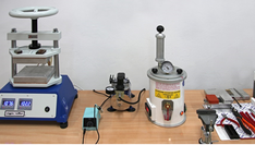 Stanowisko wyposażone jest w podstawową aparaturę do badań mas i materiałów formierskich: